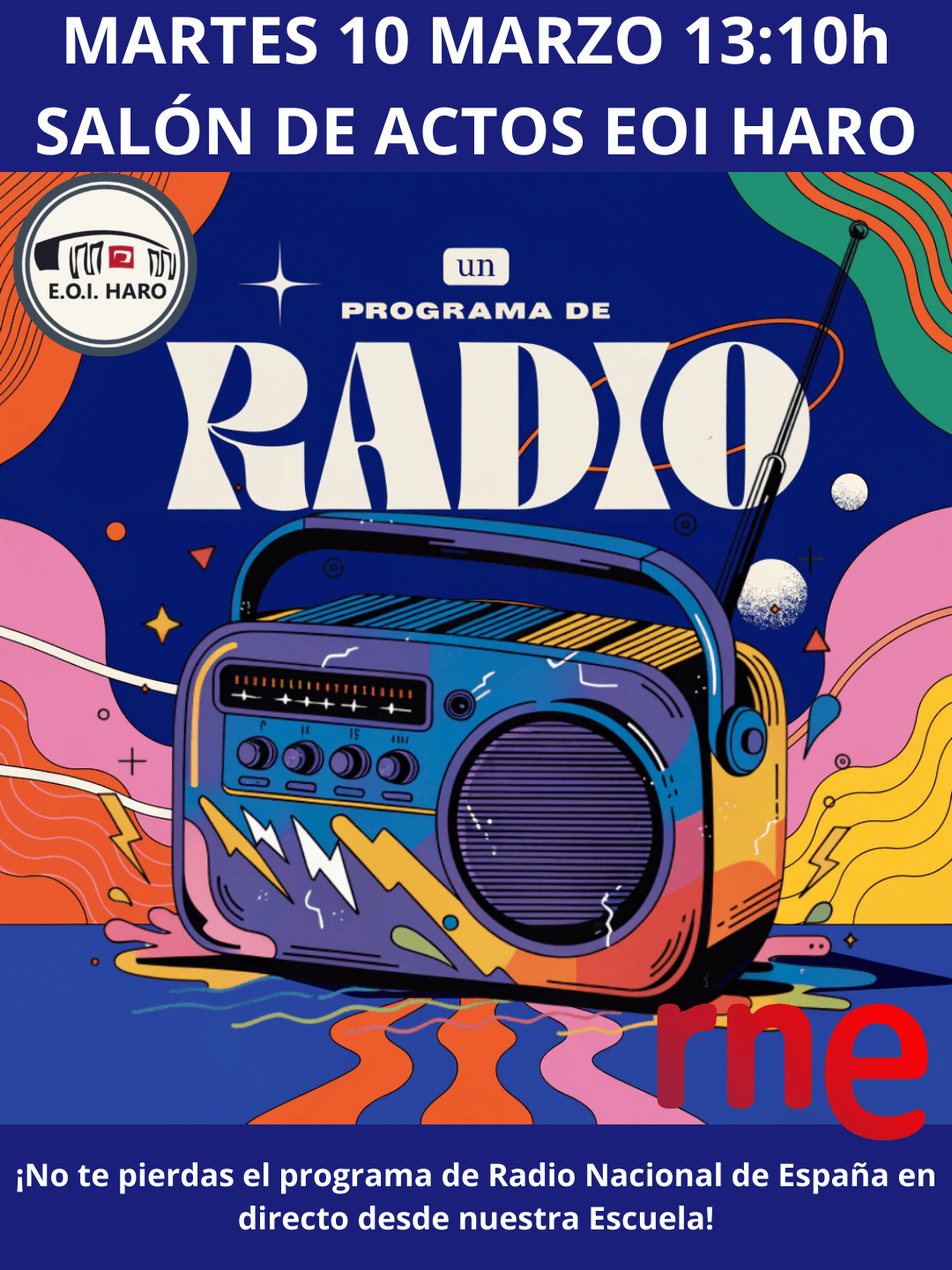 08/03/202608/03/2026Uncategorized Programa de RNE desde nuestra Escuela Estás invitado a disfrutar un programa de radio con nosotros. Los profesionales de Radio Nacional de España grabarán su magazine de La […] Leer más
